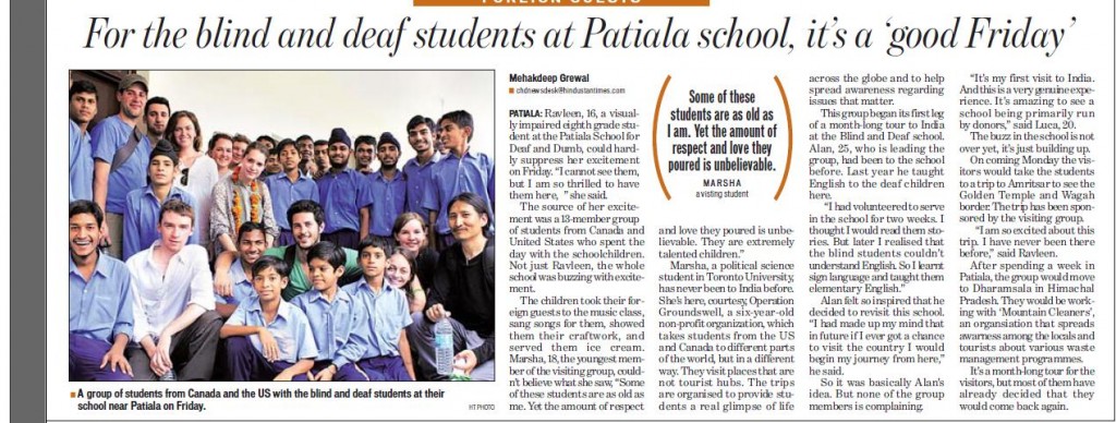 It’s only day 4 of the India trip and they are already making the papers. Check out the picture below to see an awesome article about the team’s visit to the Patiala School for the Deaf and Dumb.