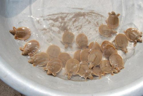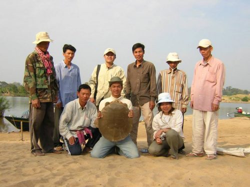 In June 2011, Conservation International and the monks of the 100 Pillar Pagoda opened the Mekong Turtle Conservation Center (MTCC) as part of the Cantor’s Giant Softshell Turtle conservation project. Located along the banks of the Mekong River in Kratie, Cambodia, MTCC’s goal is to protect the endangered softshell turtle by raising them from hatchlings in a safe environment, then releasing them back into the wild when they reach a viable age.